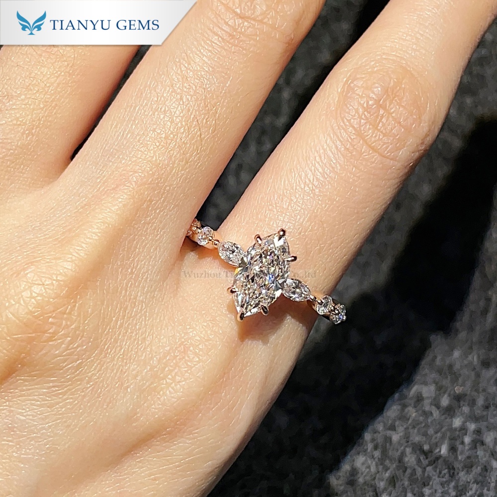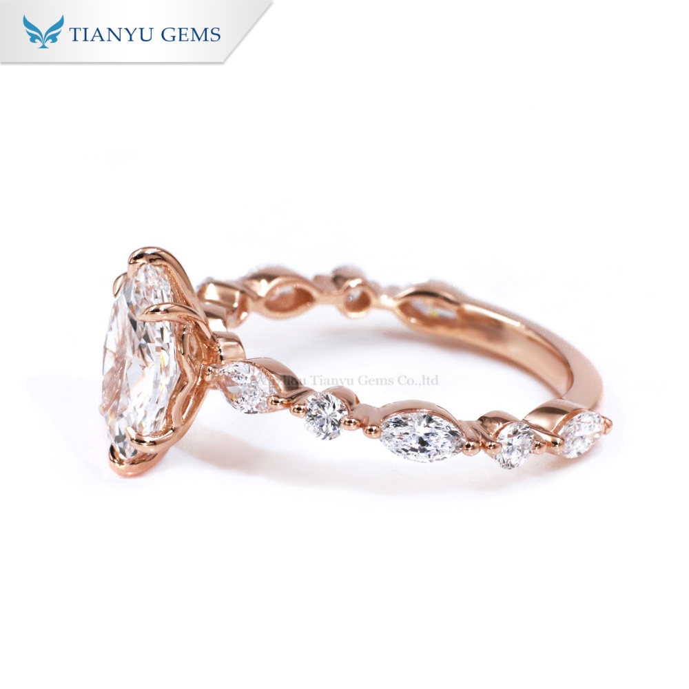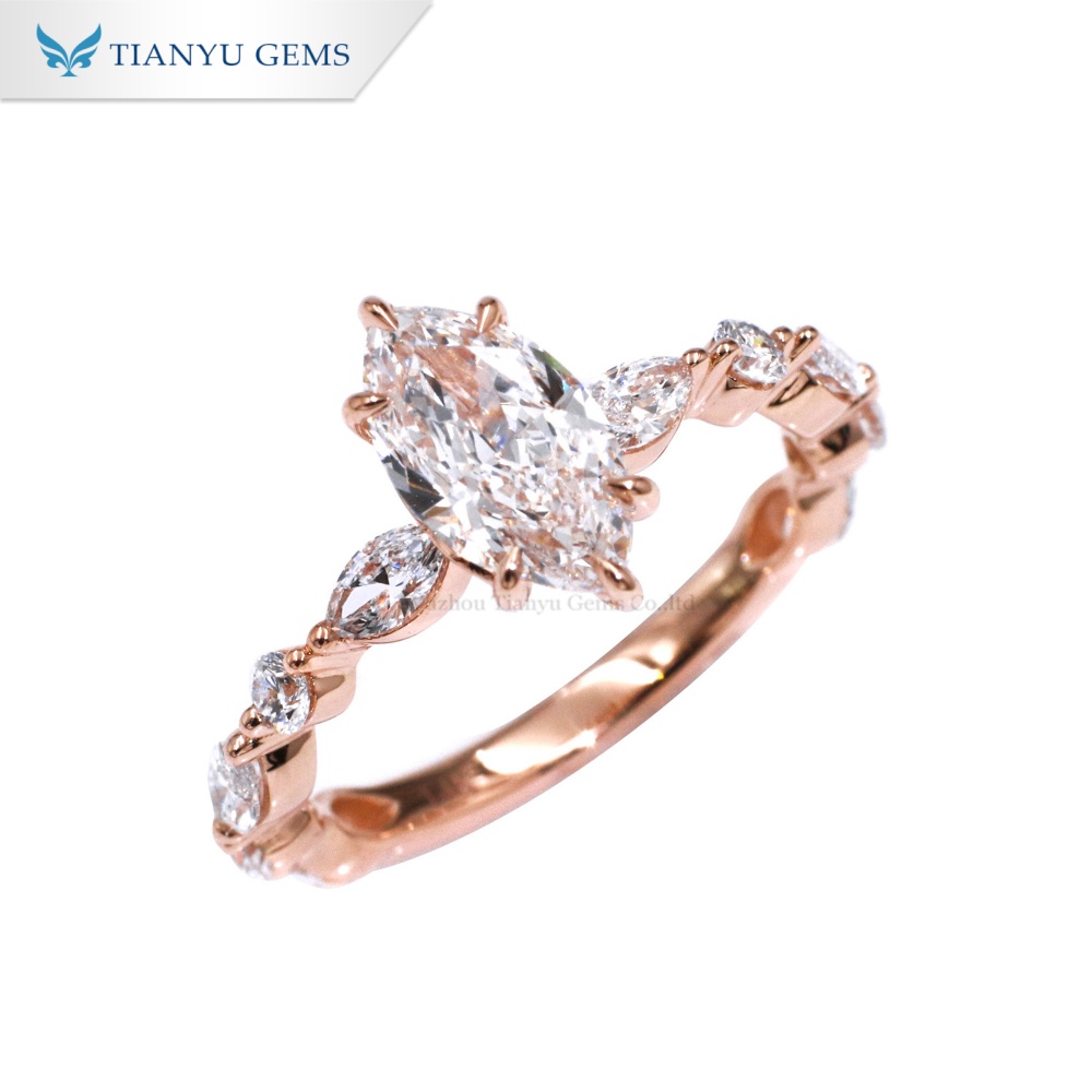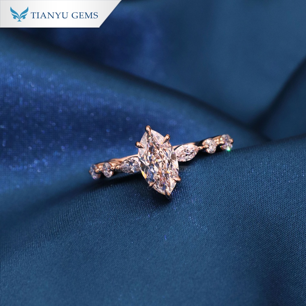 Marquise-slebne, laboratoriedyrkede diamanter parret med rosaguld tilfredsstiller ikke kun den visuelle æstetik, men giver også komfort og funktionalitet.