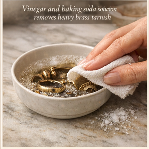 If your brass jewelry has severe oxidation—already blackened, deeply discolored, or showing traces of green patina—the lemon-salt method won’t be strong enough. Enter white vinegar and baking soda: a powerful duo that tackles stubborn tarnish and effortlessly restores brilliance.