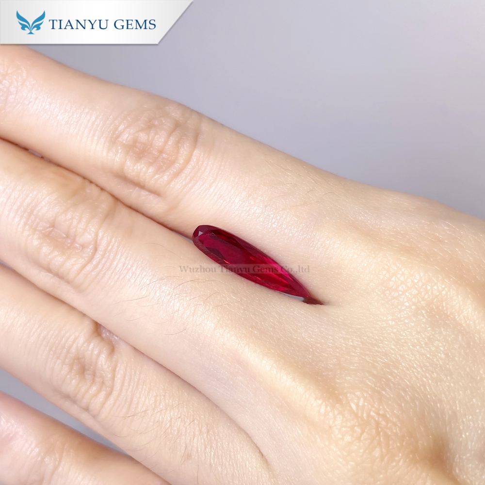 El rubí cultivado en laboratorio, alargado y con forma de pera.