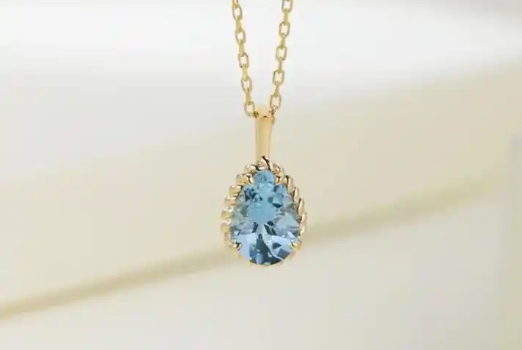Maret: Aquamarine - Batu biru menenangkan yang melambangkan ketenangan dan perlindungan.