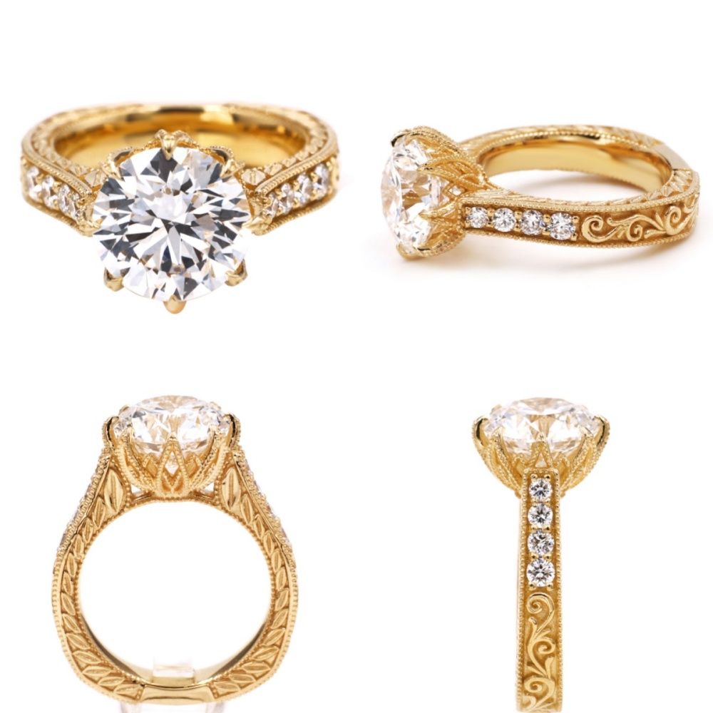 반지의 전반적인 디자인은 조각과 상감 기법을 통해 패턴을 표현하여 질감과 빈티지 스타일을 모두 구현했습니다.