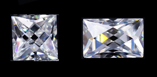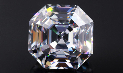 The Lucere Cut is a square stone with a step cut crown and a brilliant pavilion. To maximize the brilliance of the diamond (65 facets - 25 facets on the crown and 40 facets on the pavilion), A diamond in the Lucere cut has 3 tiers of step cut on the crown, with modified round brilliant facets at the pavilion. The cut corners make them safe and simple to set. The American Lucere features a step-cut crown and a brilliant-cut pavilion. These diamonds are always square. Our moissanite lucere cut had been modified. We add 8 facets, giving it arrows and crushed ice effect sparkle