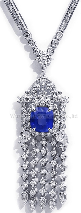สร้อยคอพู่ห้อยเป็น โดยทั่วไปทำจากวัสดุชั้นดี เช่น ทองคำหรือเงิน และอาจรวมถึงอัญมณีหลายชนิด เช่น แซฟไฟร์ เพชร หรือมรกต ซึ่งช่วยเพิ่มเสน่ห์อันหรูหรา รายละเอียดที่ซับซ้อนของการออกแบบพู่ห้อยดึงความสนใจไปที่กระดูกไหปลาร้าและลำคอ ทำให้เหมาะสำหรับโอกาสที่เป็นทางการและชุดราตรี