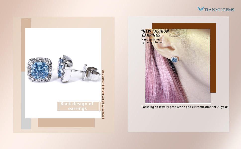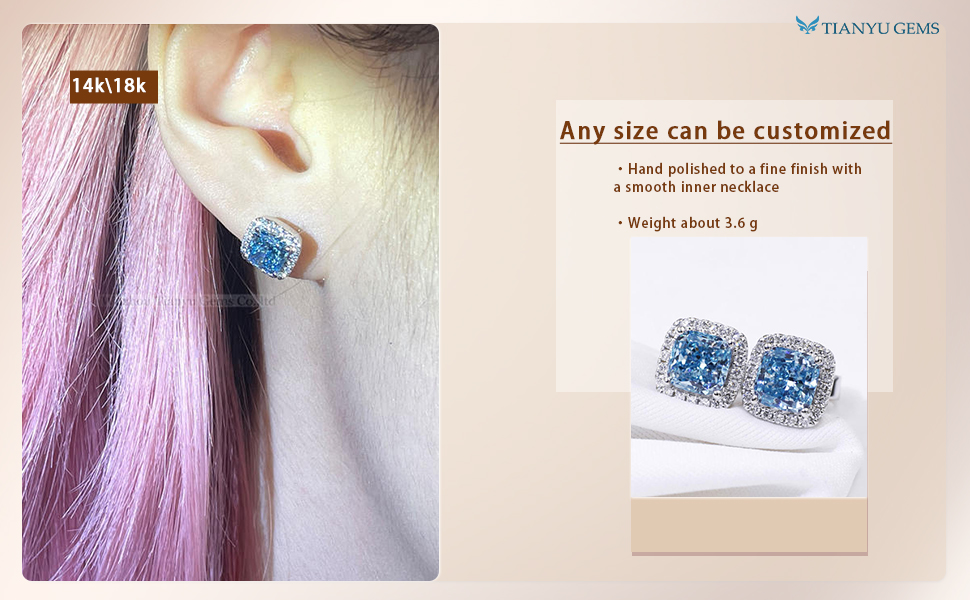 As a lab grown diamond factory, Tianyu Gems has been innovating and developing in jewelry production, such as this cushion cut earrings; and it is winning more and more favor in gold jewelry wholesale vendors.