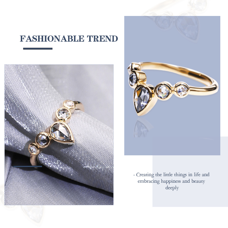 14k/18k moissanite diamond ring, it chooses pear-shaped and round moissanite diamonds to match with its unique design of noble and elegant, which can be used as daily jewellery appearing in various occasions or as a gift option.