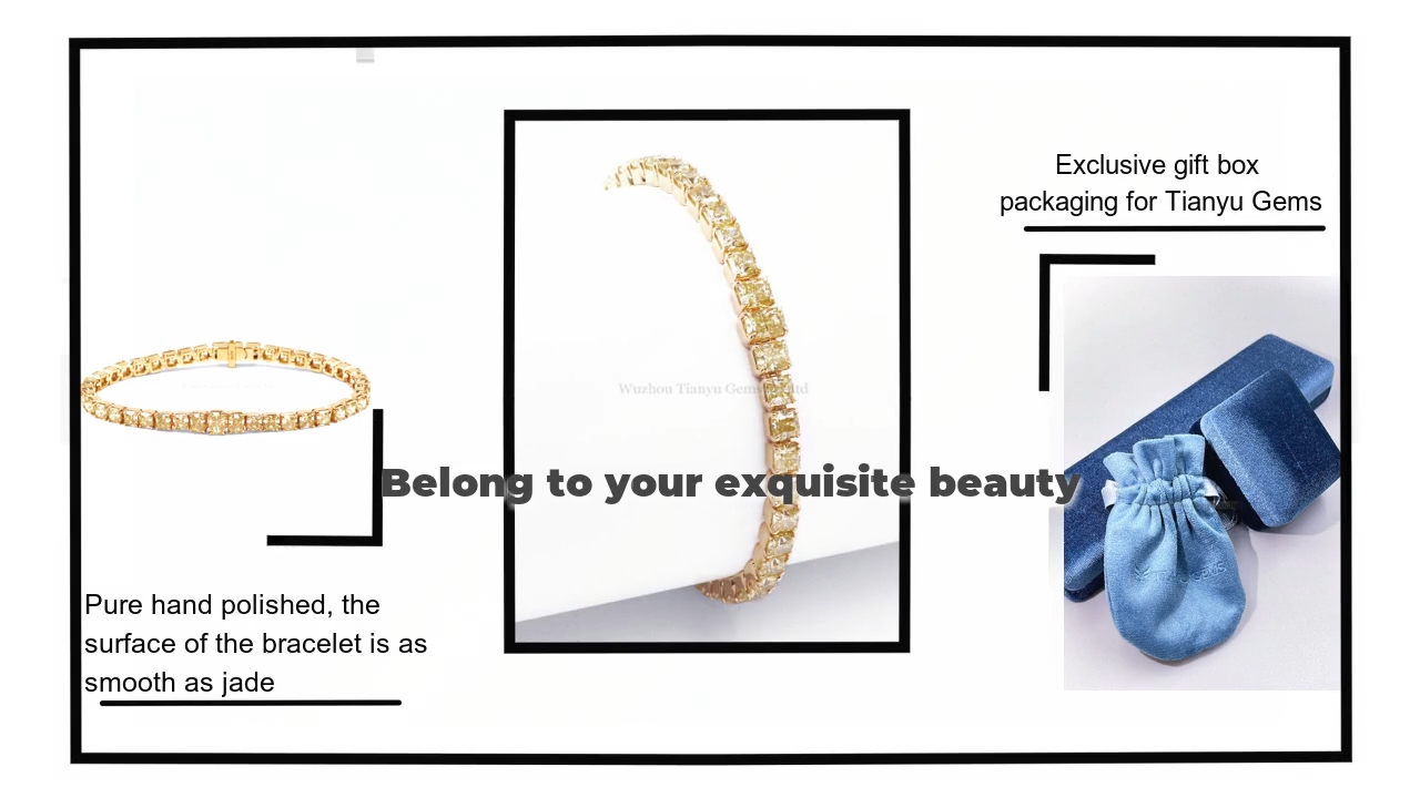 The bracelet is made of high quality yellow diamonds that are available in Tianyu Gems, and the overall weight is about 16.8 grams.