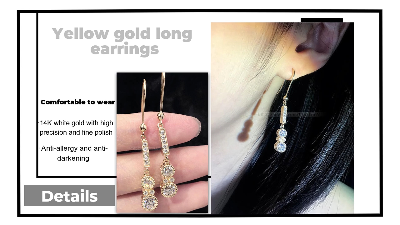 wholesale gold jewelry manufacturer new fashionable and versatile gold long earrings, the weight of the whole pair of earrings is about 5.7 grams.