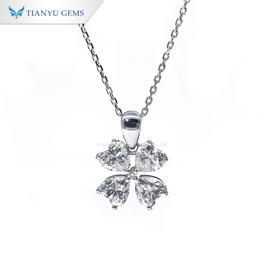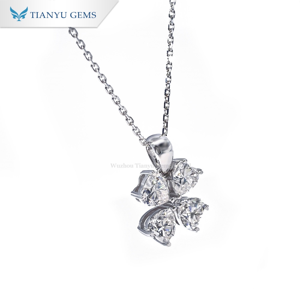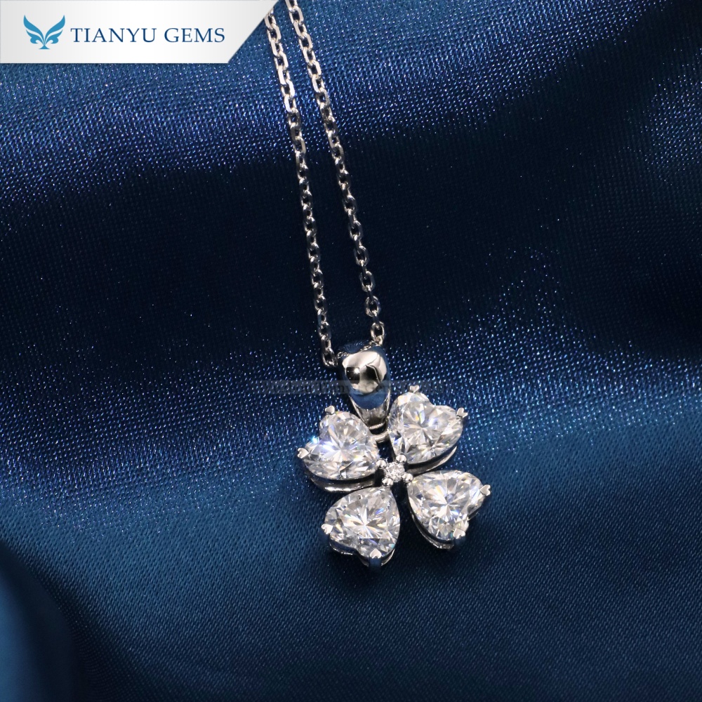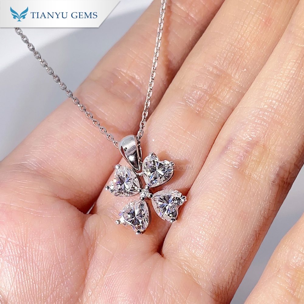 O design utiliza de forma inteligente quatro moissanitas com corte em coração de 5,5 mm x 5,5 mm como pétalas para criar o icônico formato de trevo de quatro folhas, simbolizando fé, esperança, amor e sorte.