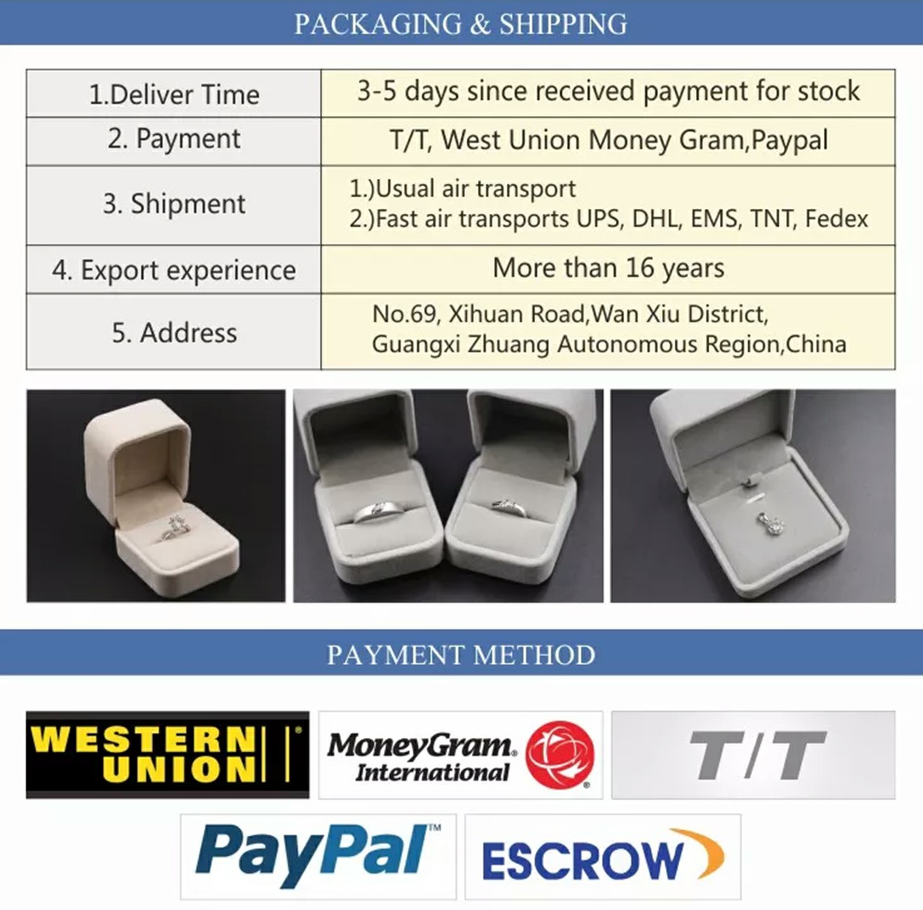Scott***A comunicação durante todo o processo de pedido foi excelente. CAD fornecido e fotos do anel final como controle de qualidade também são excelentes. Minha esposa está muito feliz com o anel, e a platina é lindamente brilhante, assim como as pedras. Meu anel chegou ao Canadá em 4 dias, o que é absolutamente fantástico da China (DHL Express). Prazer em trabalhar, rápido, de alta qualidade, tudo ótimo, assim como outras pessoas online disseram boca a boca. Recomendaria!