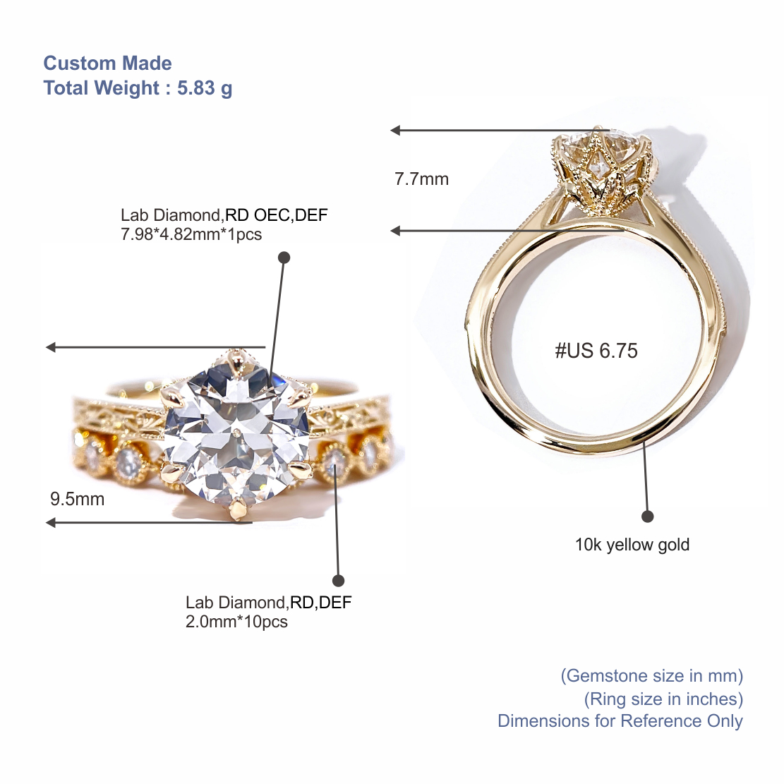 Este conjunto de anéis apresenta um diamante redondo cultivado em laboratório com lapidação europeia antiga como peça central, combinado com um anel de contas em ouro amarelo 10k. Quando combinado, o anel secundário se adapta naturalmente às curvas do anel principal, criando um efeito de camadas que maximiza a profundidade visual. Mais do que um simples acessório de moda, ele oferece valor e praticidade — feito sob medida para o jovem urbano antenado e preocupado com o estilo, que aprecia gastar com consciência.