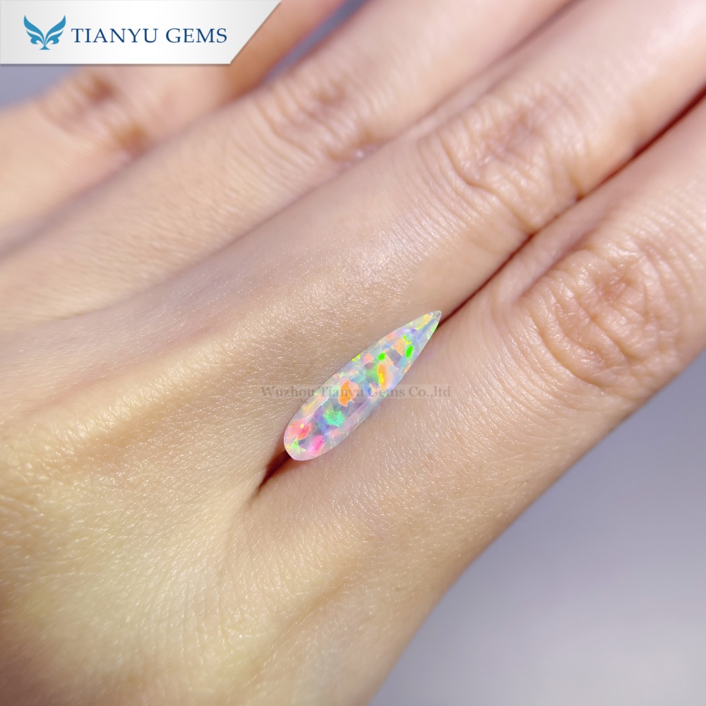 Удлинённый опал грушевидной формы сочетает в себе изящную элегантность каплевидного силуэта с чарующей игрой цвета, присущей только опалам. Его вытянутая форма добавляет изысканности, делая его идеальным для эффектных подвесок или серёг-капель. Каждый удлинённый опал грушевидной формы огранён вручную, чтобы максимально подчеркнуть яркие цветовые переливы — от нежных пастельных до огненно-синих и зелёных — создавая завораживающее зрелище при каждом движении. Эта огранка идеально подходит для элитных ювелирных изделий, поскольку она увеличивает как длину, так и блеск, предлагая современную интерпретацию классической формы драгоценного камня.