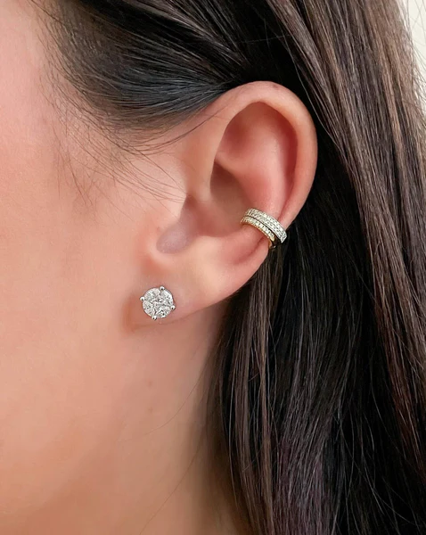 Серьги-хагги, относящиеся к подвиду сережек-колец, плотно прилегают к мочке уха. Эти серьги являются отличной альтернативой для тех, кто ищет эстетику сережек-колец без дополнительного веса, который присущ серьгам большего размера.
