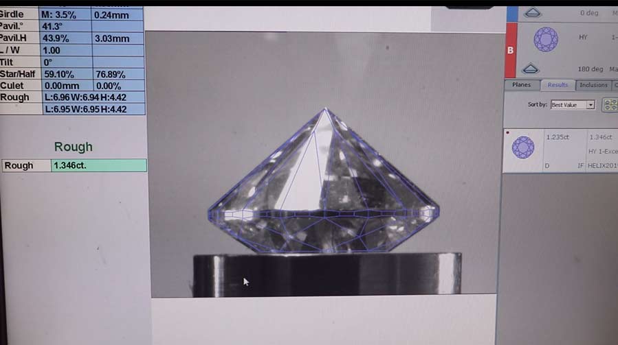 Исходный алмазный материал будет помещен на профессиональный станок, а система автоматизированного проектирования будет использоваться для анализа исходных алмазов, а затем с помощью очень точного лазерного луча маркируется их поверхность; дизайн, какую форму мы должны вырезать. В то же время мы также поддерживаем кастомизацию бриллиантов различных форм и размеров.