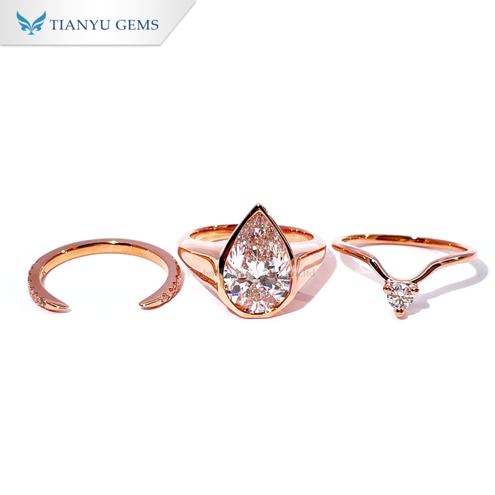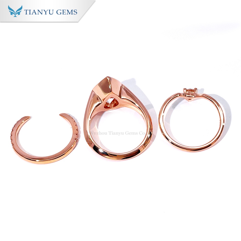 Комплекты колец из розового золота – одни из самых популярных вариантов на современном рынке обручальных колец. Они воплощают классическую элегантность драгоценных металлов, предлагая при этом более современную и модную эстетику, чем традиционное жёлтое или белое золото. Этот комплект из розового золота с выращенными в лаборатории бриллиантами состоит из основного кольца и двух акцентных колец, что добавляет визуальной привлекательности, а также повышает комфорт и общую красоту.
