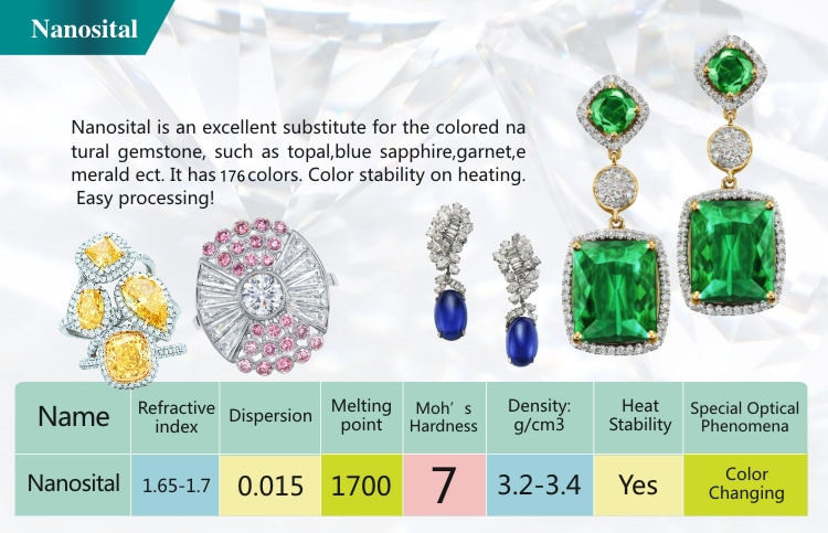Andra syntetiska ädelstenar: Medan många syntetiska ädelstenar erbjuder enhetliga färger, är Nanositals enhetlighet särskilt känd för dess likhet med naturliga ädelstenar som safir och rubin.
