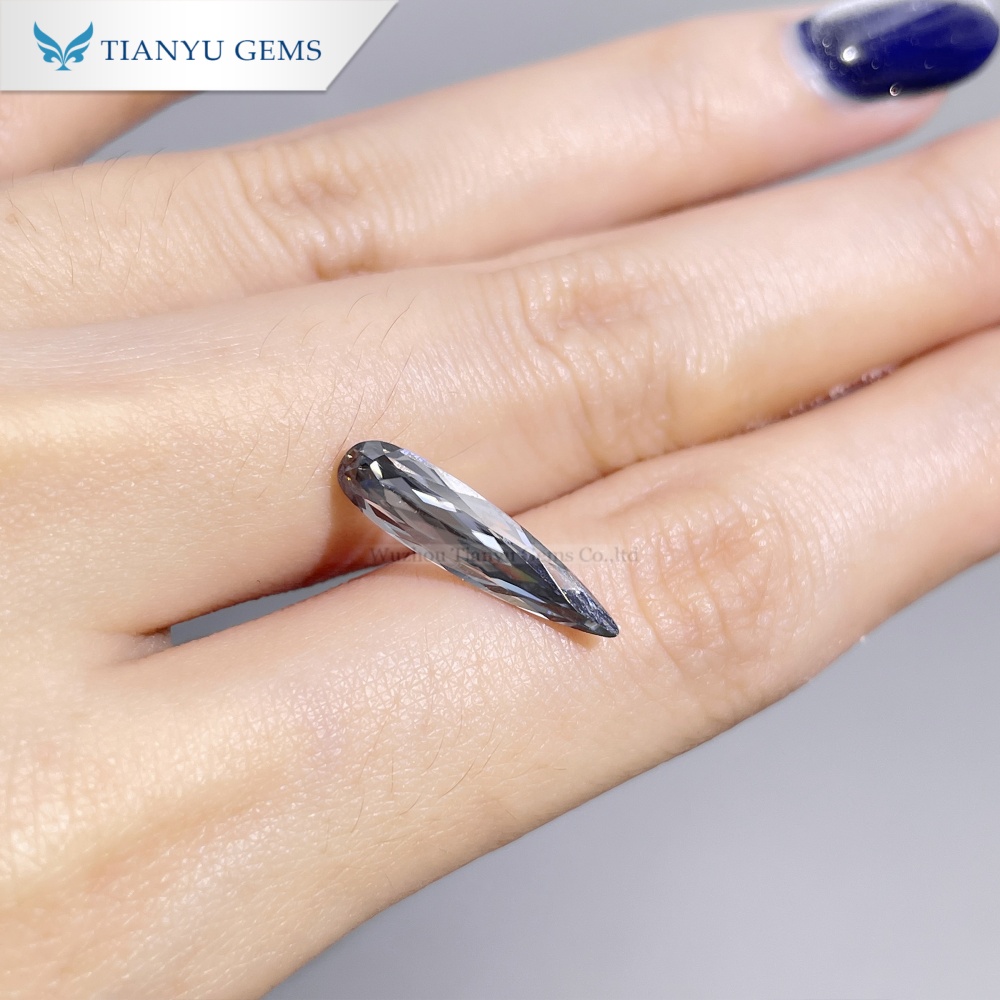 Den avlånga päronformade grå moissaniten är en fantastisk blandning av elegans och modern charm. Dess eleganta, droppformade silhuett förlänger fingrets utseende, medan den rökiga grå nyansen erbjuder ett unikt alternativ till traditionella klara stenar. Denna moissanit är expertmässigt handslipad för att förstärka briljans och eld, och fångar ljuset vackert och skapar en skimrande effekt i alla vinklar. Den avlånga formen ger en modern touch, perfekt för förlovningsringar, hängen eller exklusiva modesmycken. Med exceptionell hållbarhet och en sofistikerad ton är grå moissanit i en avlångt päronslipning idealisk för dem som söker raffinerade, unika designer.