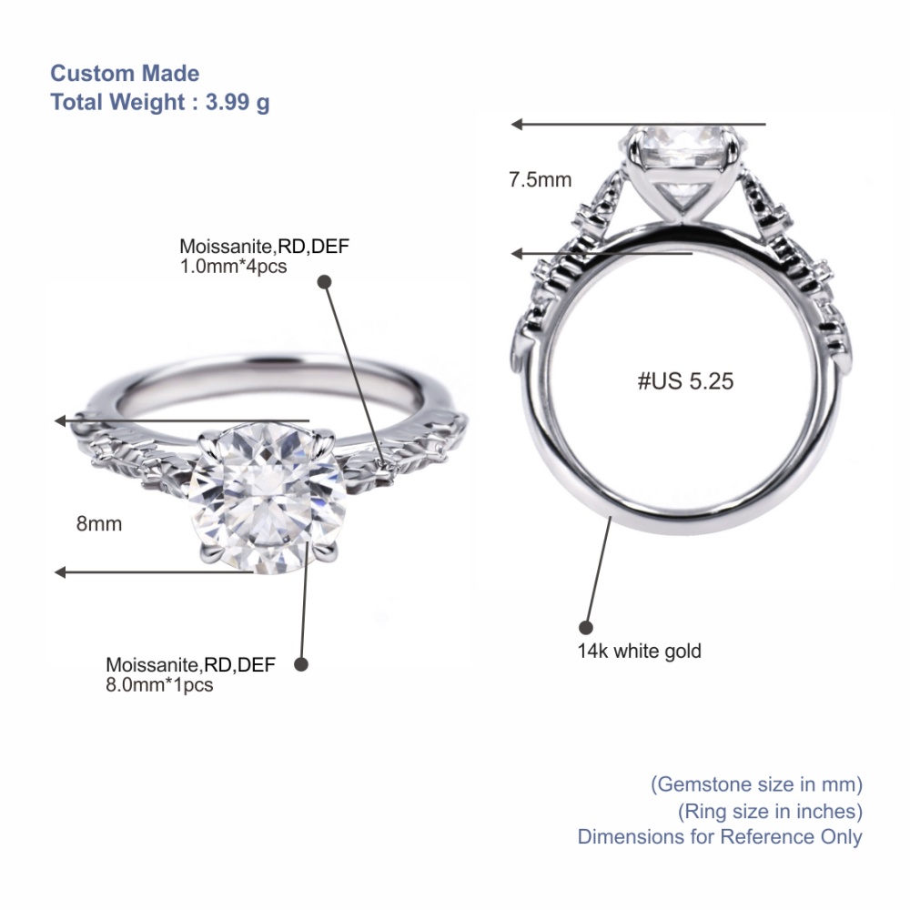 Med ett lövmotiv som pryder armbandet förstärker denna design den visuella effekten avsevärt, vilket gör att mittstenen ser större och mer lysande ut – en av dagens mest eftertraktade stilar. Dessutom har runda moissanitringar utvecklats från att bara vara "prisvärda alternativ" och etablerat sig som en distinkt, livfull kategori inom modesmycken.