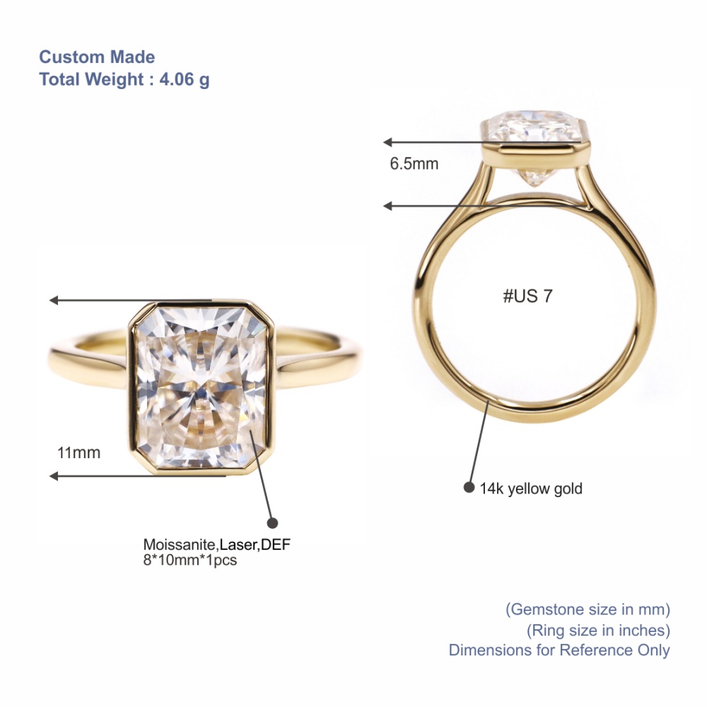 Moissanite diamant bezel set en sten ring är designad i en modern minimalistisk stil; den är lätt att bära för vardagliga eller speciella tillfällen.