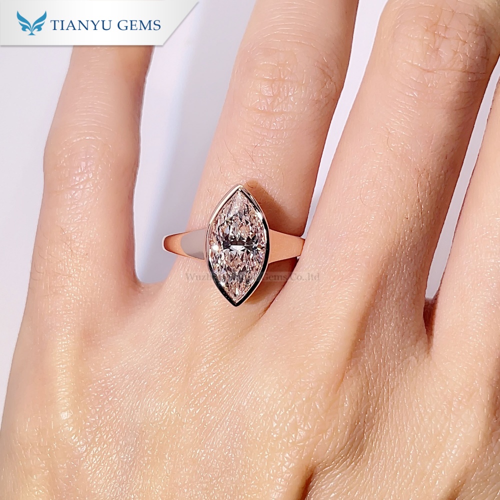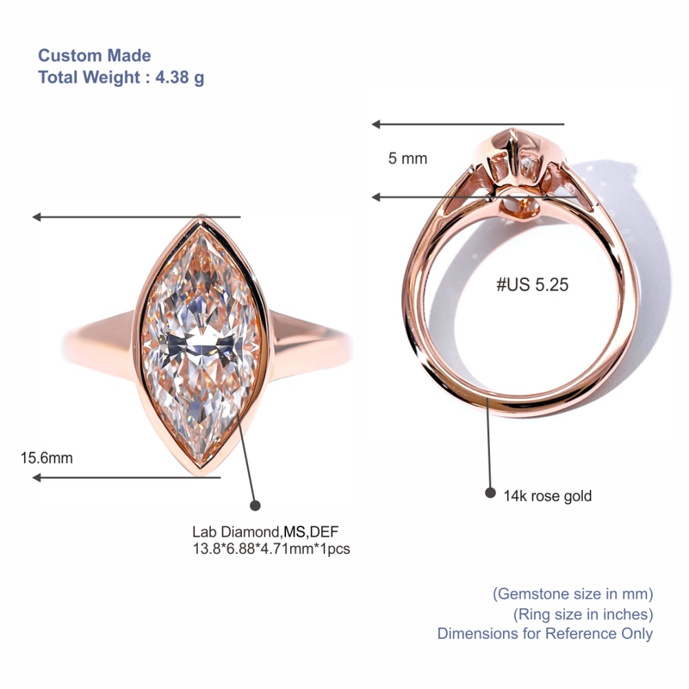 ไร้การออกแบบที่เกินจริง เพียงแค่เพชรที่ผลิตในห้องแล็ปพร้อมการตกแต่งแบบมาร์คีส์ จับคู่กับทองคำชมพู 14 กะรัต เปี่ยมไปด้วยความซับซ้อนในความสง่างามที่เรียบง่าย