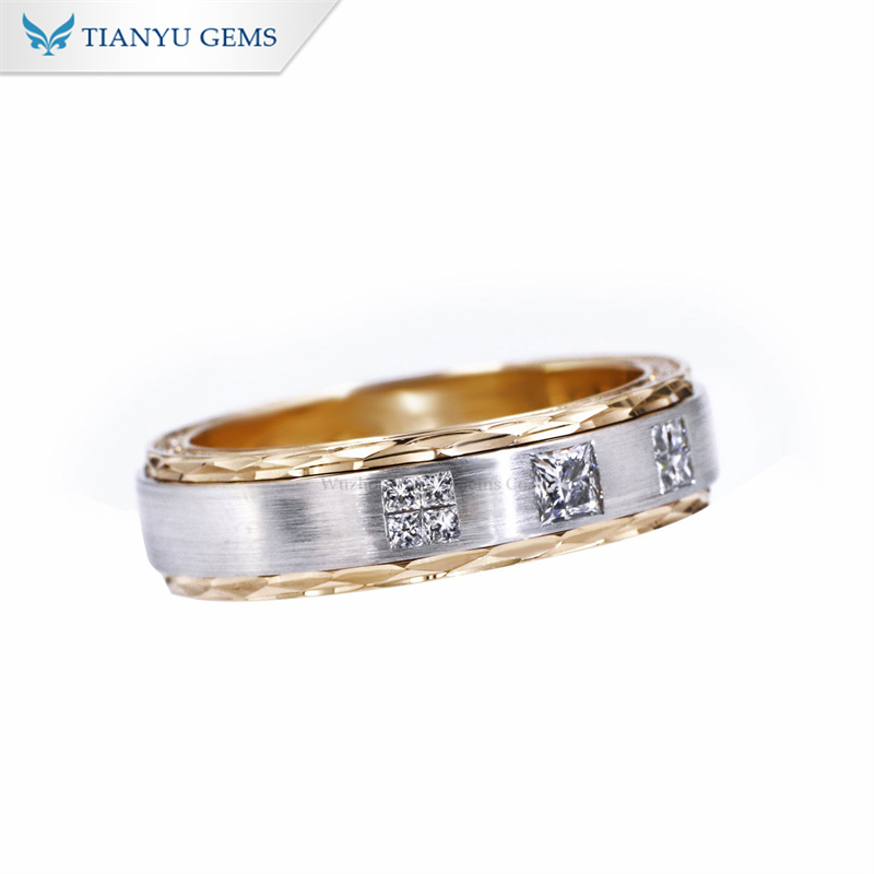Color blocking design breaks the limitation of the traditional single tone, skillfully combining 18K white gold and yellow gold together; the strong visual contrast instantly attracts people's attention.The combination of 18K white gold/yellow gold men's ring, color blocking design, lab grown diamonds, and brushed craftsmanship is the ideal pick for modern men's wedding rings.
