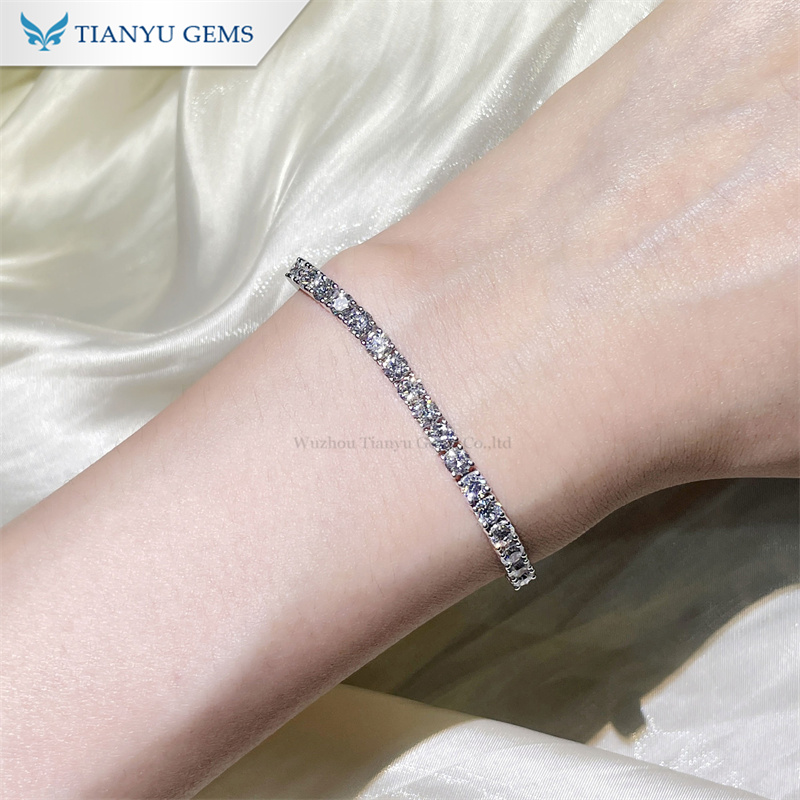 This bracelet is half 3.5mm round moissanite diamond prong-set and half geometric formations, making it both an everyday style and a party jewelry choice.